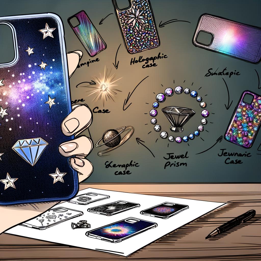 8. Introduction to Other Phone Case Designs: Holographic Prism and Whimsical Jewel Encrusted Case