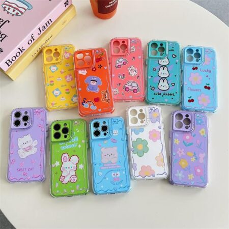 Cute Cartoon Phone Cases for iphone 16 15 pro max 14 13 12 11 Cellphone Hand Strap Back Cover Colorful Macaron color