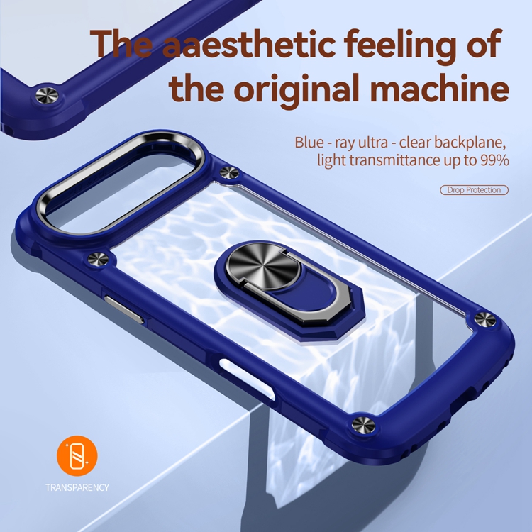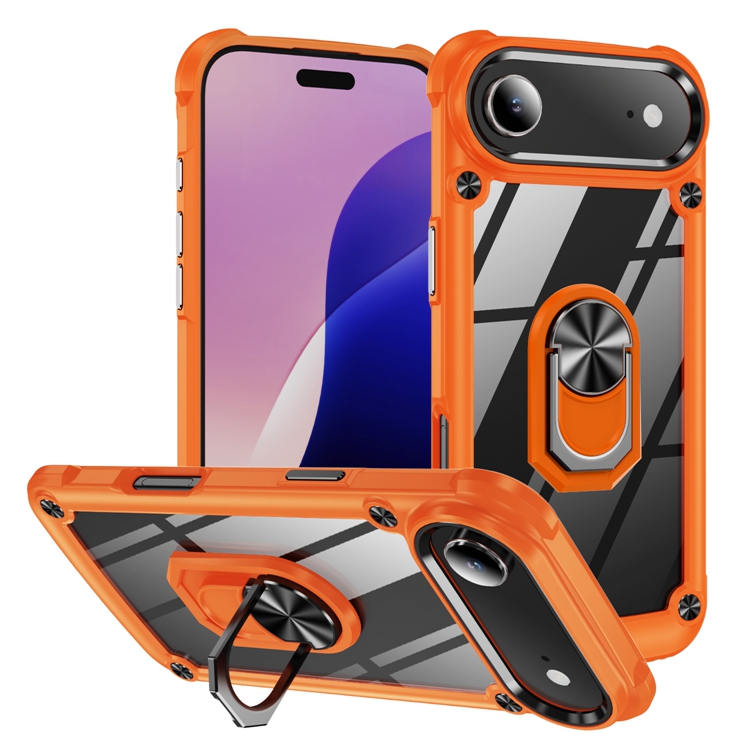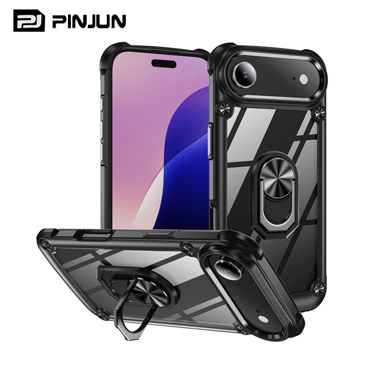 2025 High-end Magnet Ring Crystal Clear PC Mobile Phone Case for iPhone 16E Transparent Magnetic Stand Phone Case