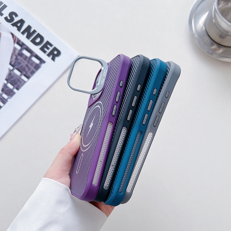 BAILI factory High quality solid color carbon fiber blade magnetic twill lens holder cell phone cover for Iphone 12 Pro 13 Max