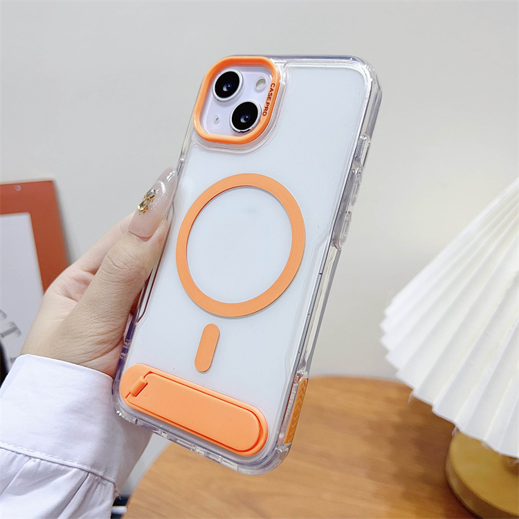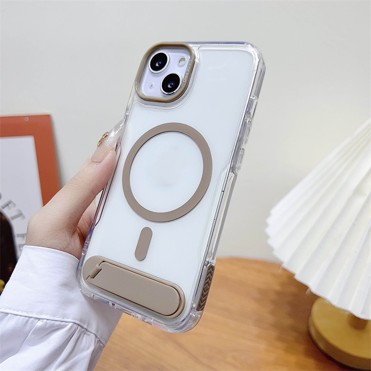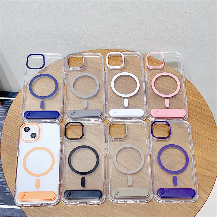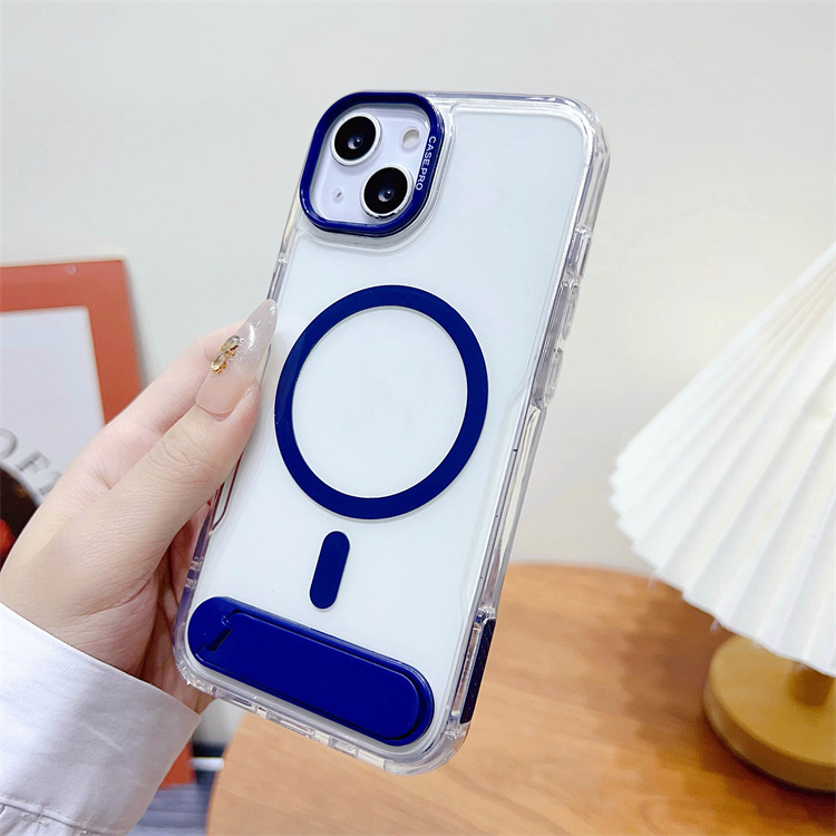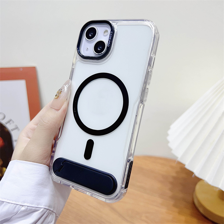 BAILI Factory Japanese Korean Style High Quality Transparent Acrylic Wireless Charging Magnetic Stand Phone case for Iphone 15+