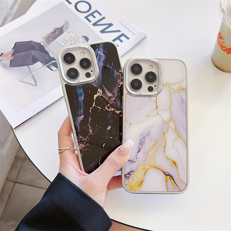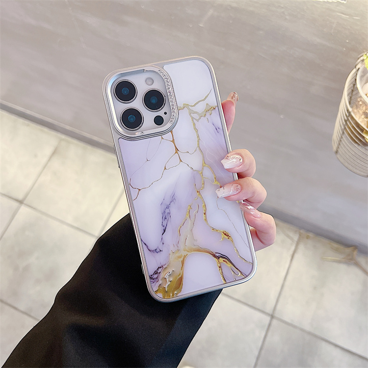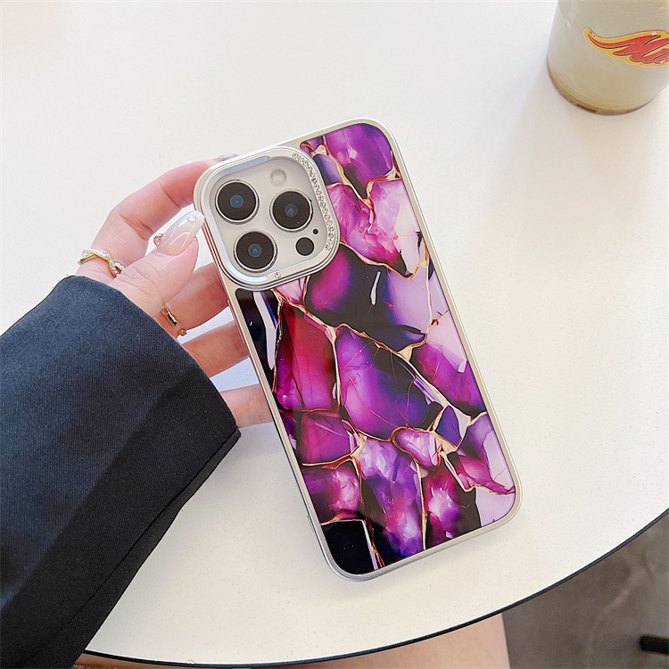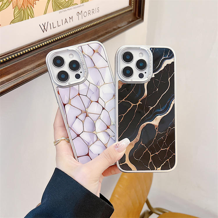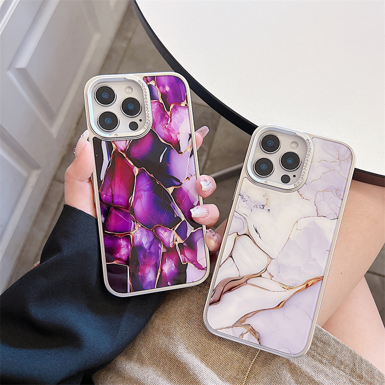 Fashion Marble Pattern Colored Silver Phone case for iPhone 17 16 Plus 15 Pro Max 14 13 12 11 IMD Shell Funda Mobile Back Cover