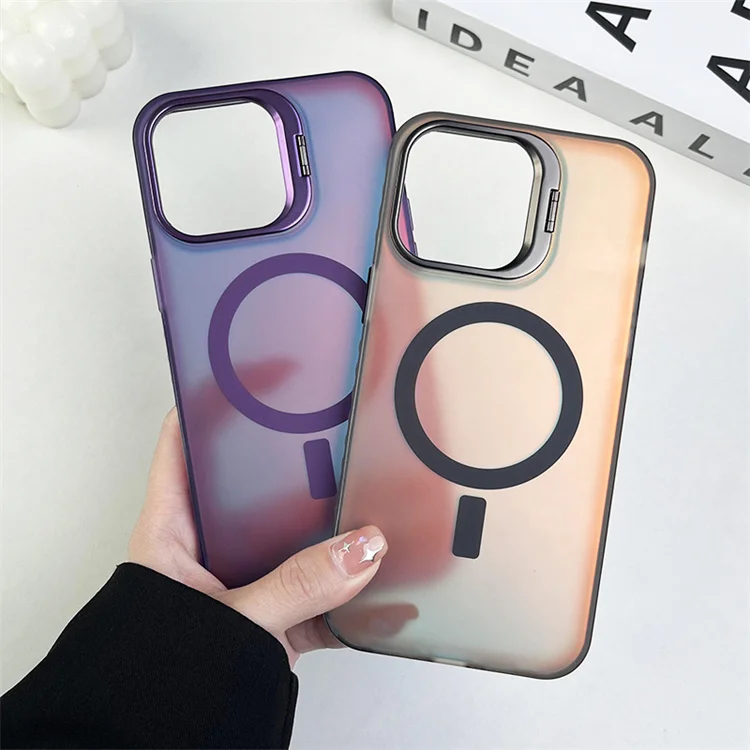 Luxury Frosted Magnetic Phone Case for iPhone 16 Pro Max with Camera Ring Stand
