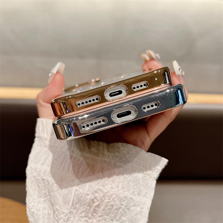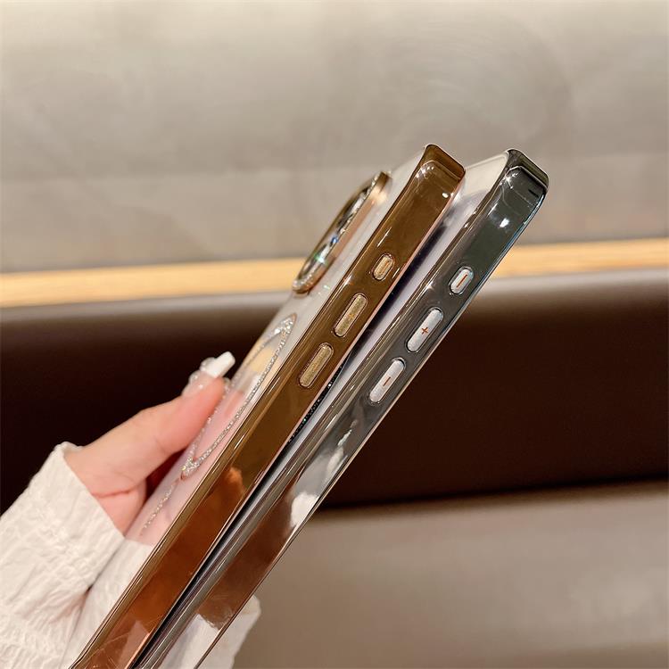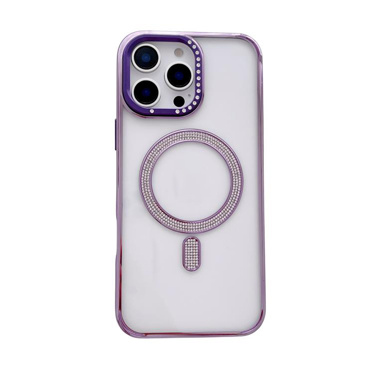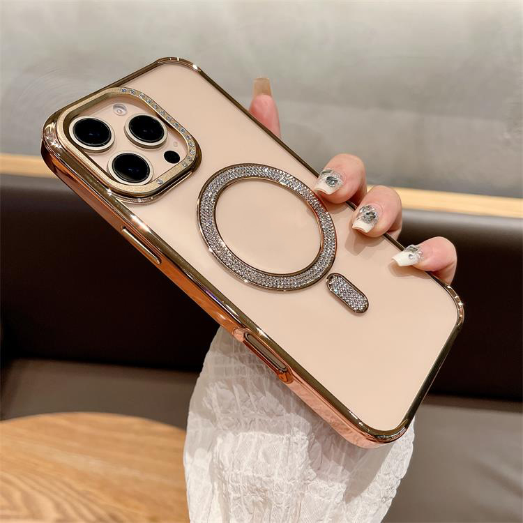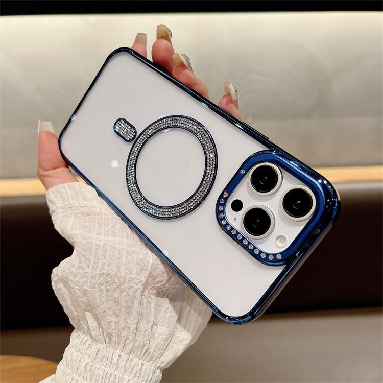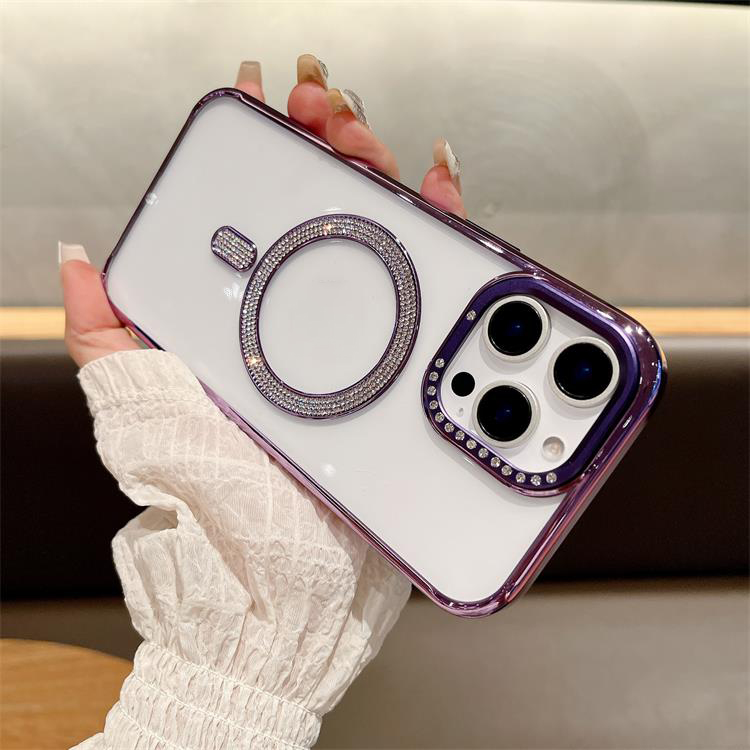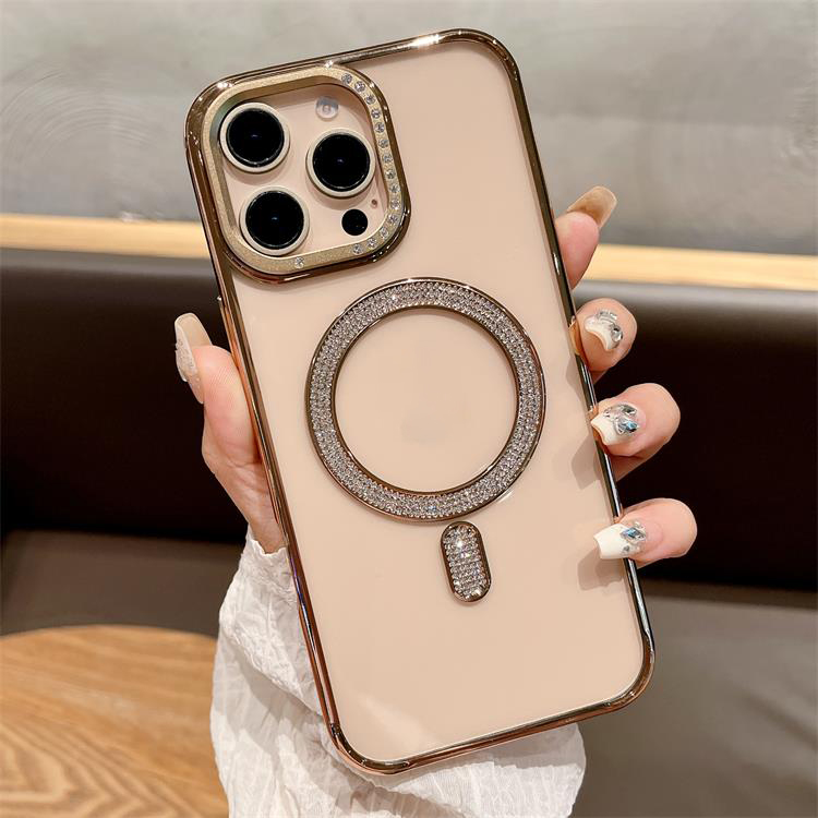 New Electroplating magnetic transparent Phone Case for iPhone 11 12 13 14 15 16 pro max Luxury Rhinestone border phone accessories