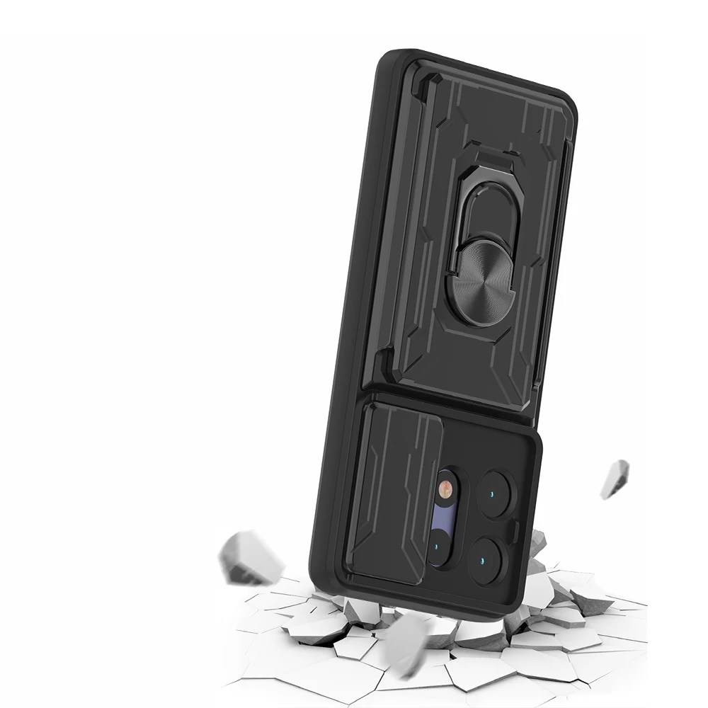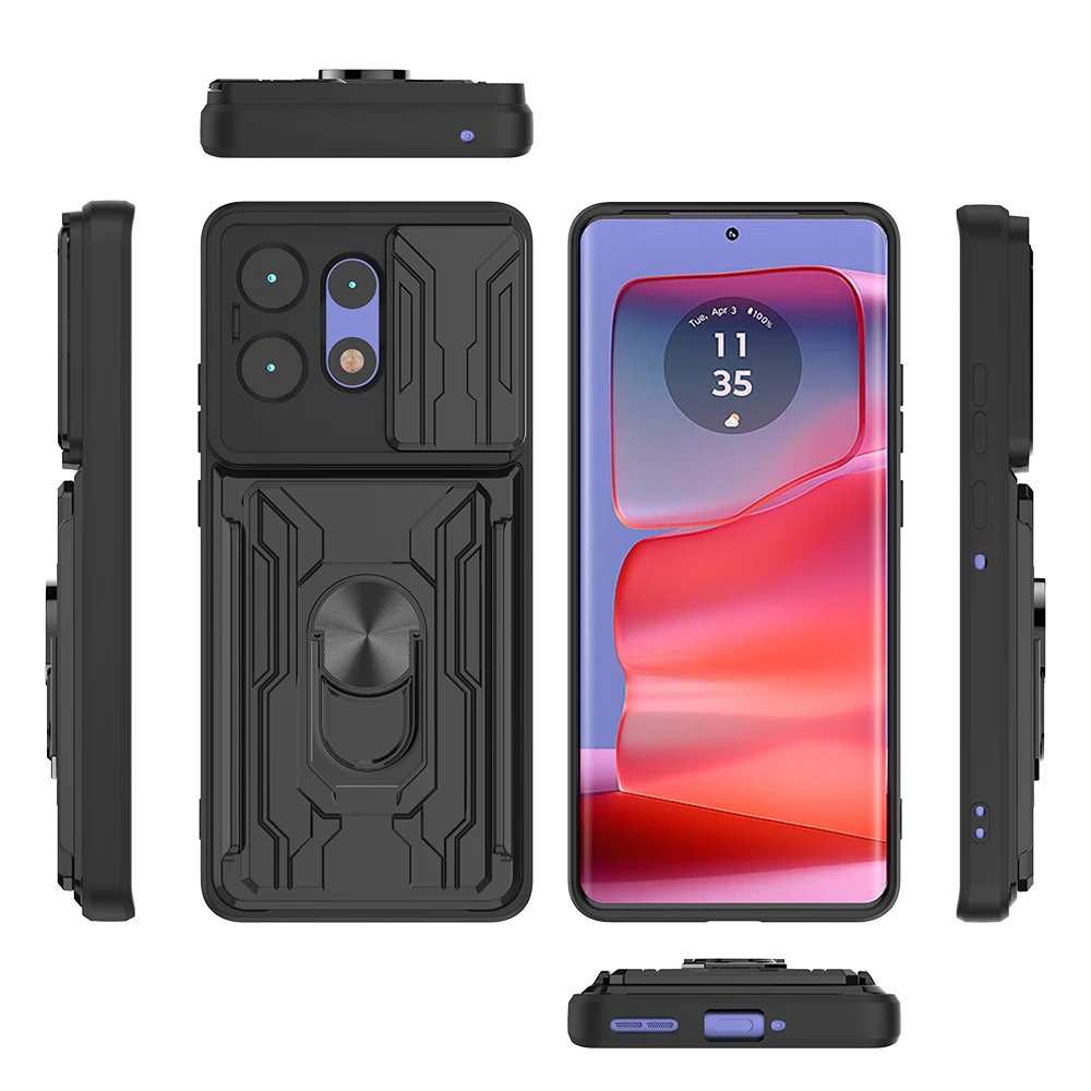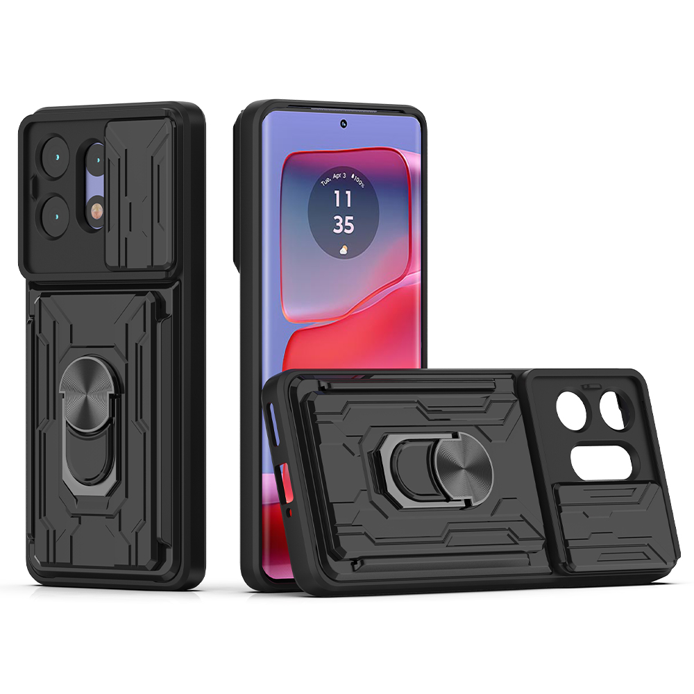 Shockproof Armor Ring Card Slot Back Phone Case For Motorola Edge 50 Pro 5G